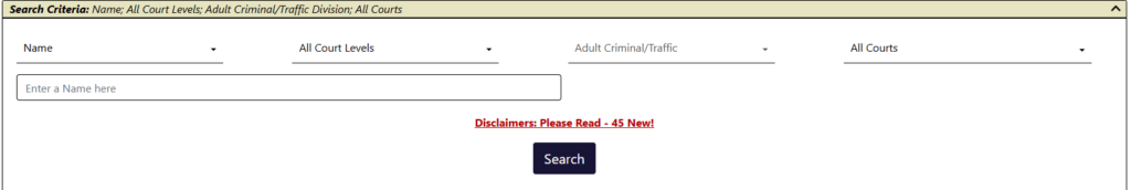Case number search gives the most accurate results. On the homepage, choose one of these search types: